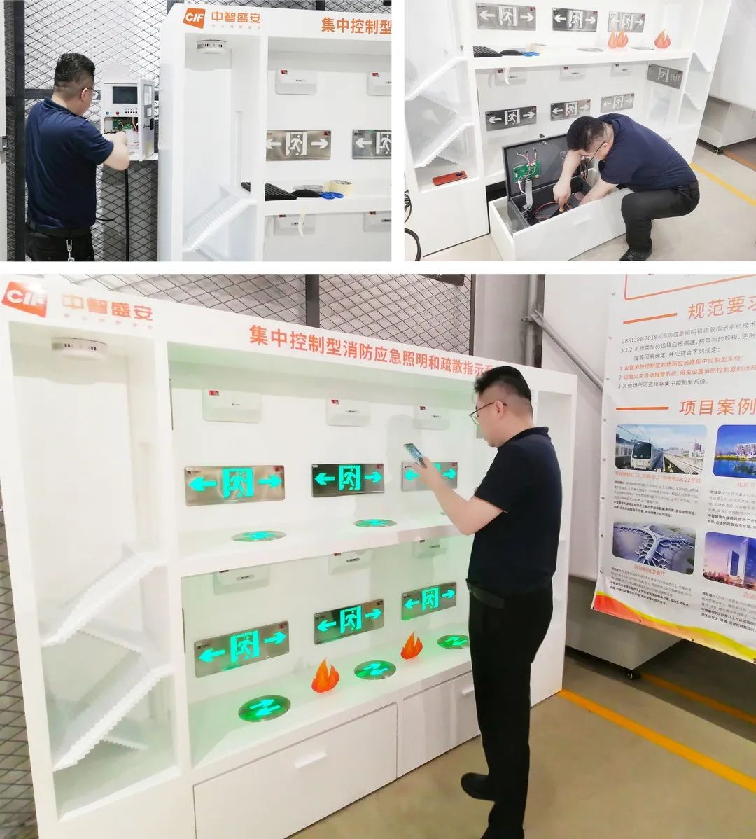 中智盛安廣受市場認可及用戶好評的CIF-SENSE100消防應急照明和智能疏散指示系統,也在展示體驗之列。他們將系統及配套產品的完整模型安置在體驗區供大眾了解參觀。